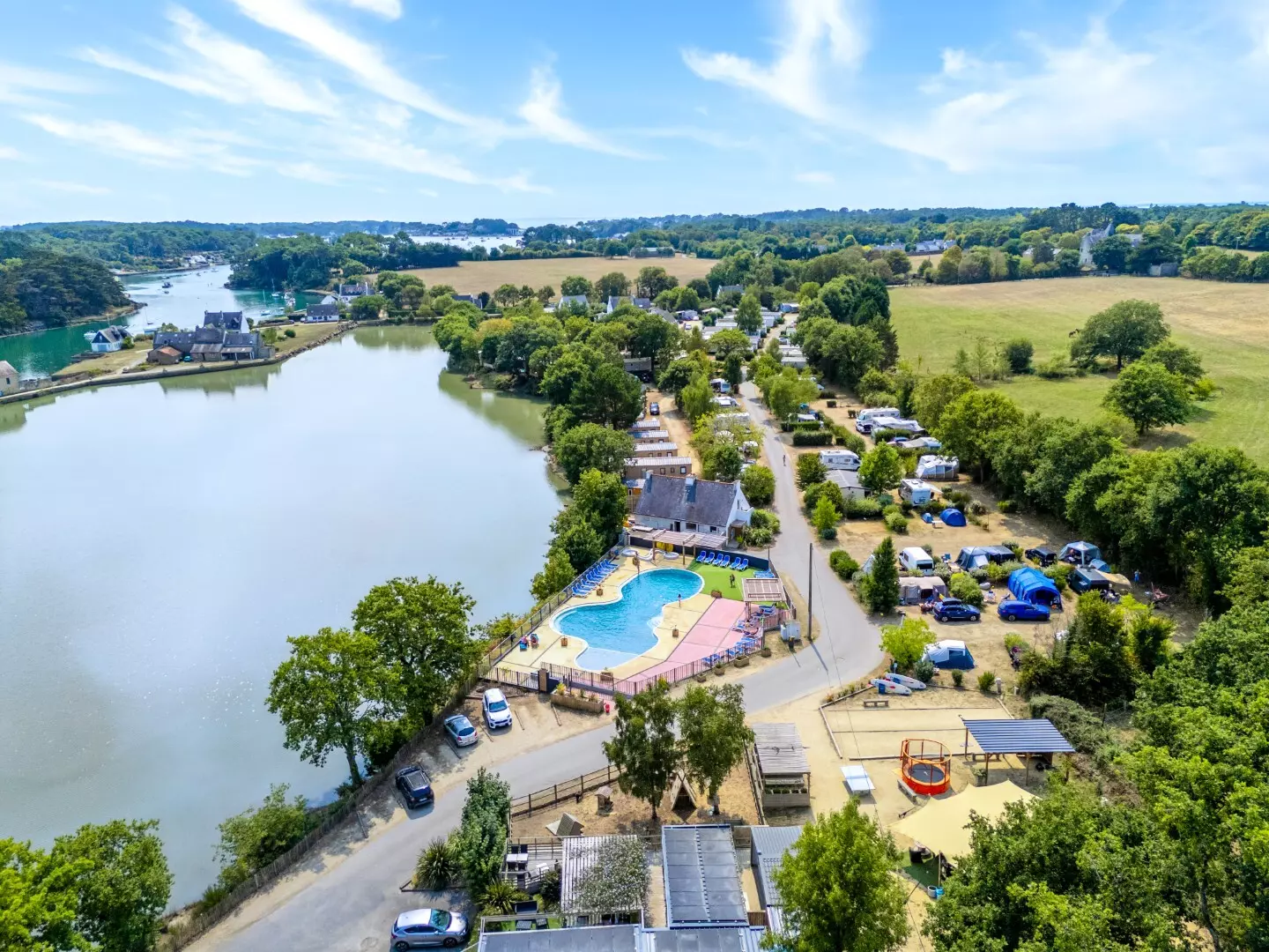 Mostra la mappaBenvenuto Campeggio maeva Respira Le Lac, un rifugio di pace immerso sul lago Carnac nella Bretagna meridionale. Ideale per gli amanti della natura, questo campeggio a 3 stelle offre un soggiorno rilassante in un ambiente eco-responsabile. Che tu sia con famiglia, coppia o amici, Eric e la sua squadra vi accolgono per godere di un'atmosfera amichevole e varie attività per una vacanza indimenticabile.