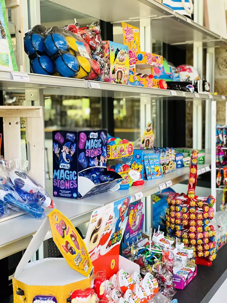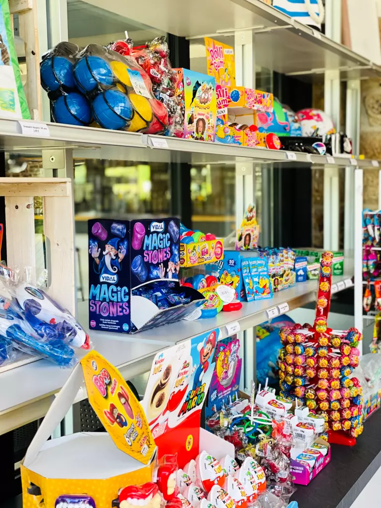 - Negozio di alimentari : prodotti essenziali, servizio pane, giornali locali. Pane deposito aprile, maggio, giugno e settembre alla reception, luglio e agosto presso il negozio di alimentari. - Grocery e bar aperti dalle 8:00 alle 1pm e dalle 16:00 alle 20:00 per la spesa e dalle 1pm al bar dal 01/07 al 27/08