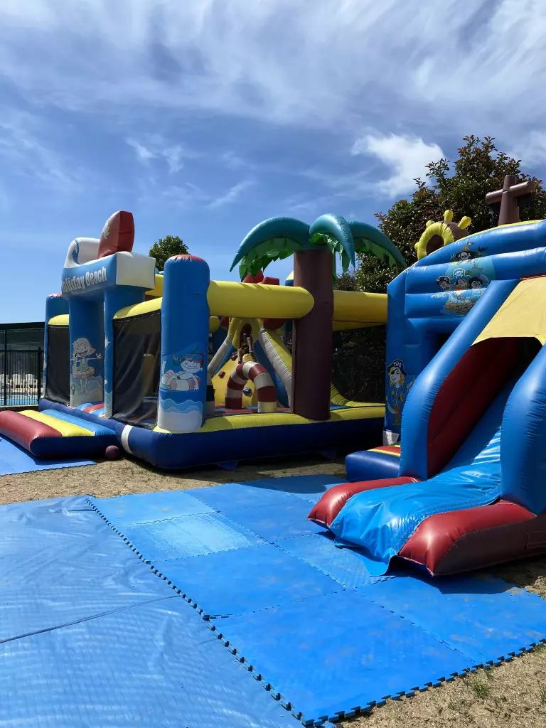 Les enfants seront heureux de pouvoir s'amuser dans nos deux jeux gonflables ainsi que sur notre aire de jeux exclusivement réservé aux jeunes enfants !